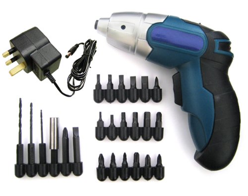 This Marksman cordless screwdriver features a high quality, robust and durable plastic construction and comes complete with a 24 assorted screw bits making it great value for money. The screwdriver is compact and easy to use making it perfect for DIY jobs around the home or to use in the workplace.