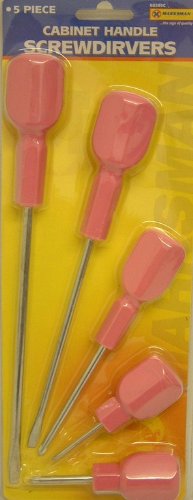 5 PC PIECE PINK CABINET HANDLE SCREWDRIVER SET