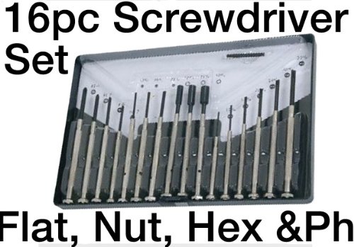 16 Pc Precision Screwdriver Set - Flat, Nut, Hex & Philips Drivers - High Quality