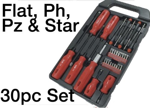 Screwdriver Set - 30pc Set - Flat, Philips, Pozidrive & Star Head) Good Quality Products